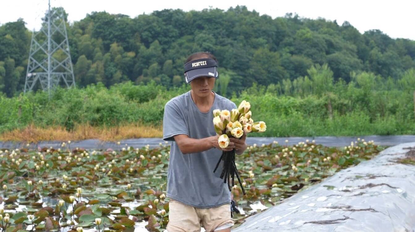 过去,这里栽种传统农作物经济效益不佳,近年来,随着乡村振兴战略的深入实施和大家对美的追求呈现出多样化,龙麒宇捕捉到观赏睡莲的市场潜力,与人合伙试种。这段时间,他每天带工人采摘花朵和种苗供应市场。龙麒宇称,渐变颜色的睡莲品种是目前市场上的爆款,花期为4月至10月,部分品种能开到12月。