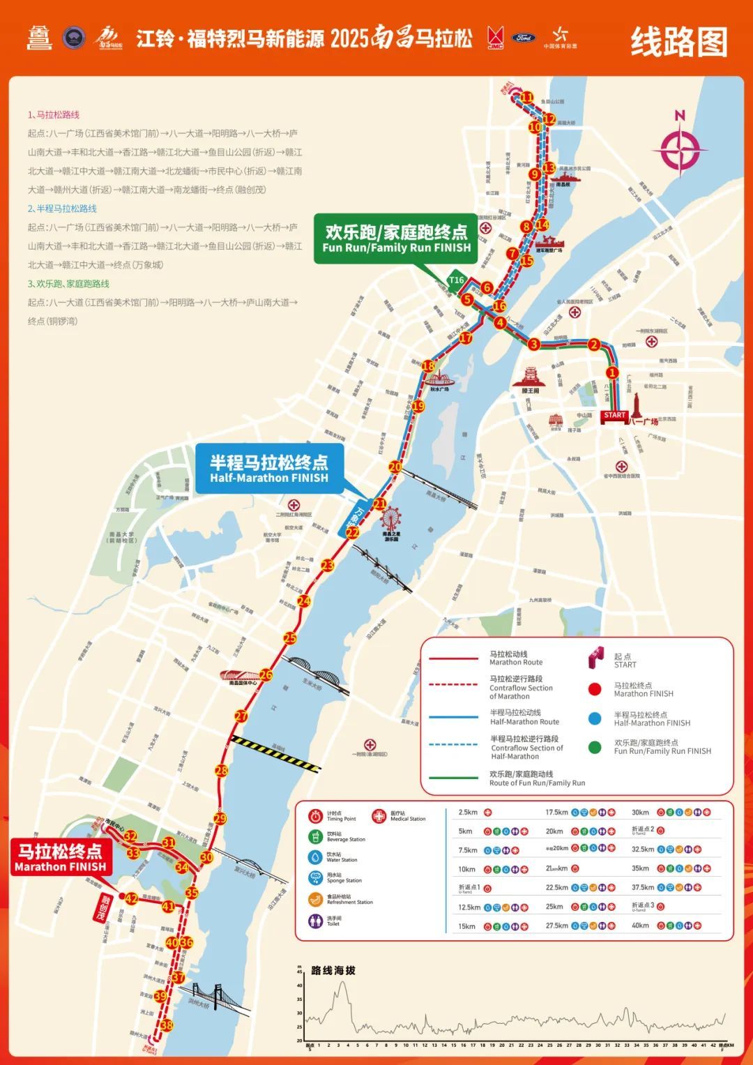 今年的赛道继续沿用“一江两岸”特色路线,感受英雄城的魅力与赣江的壮阔。