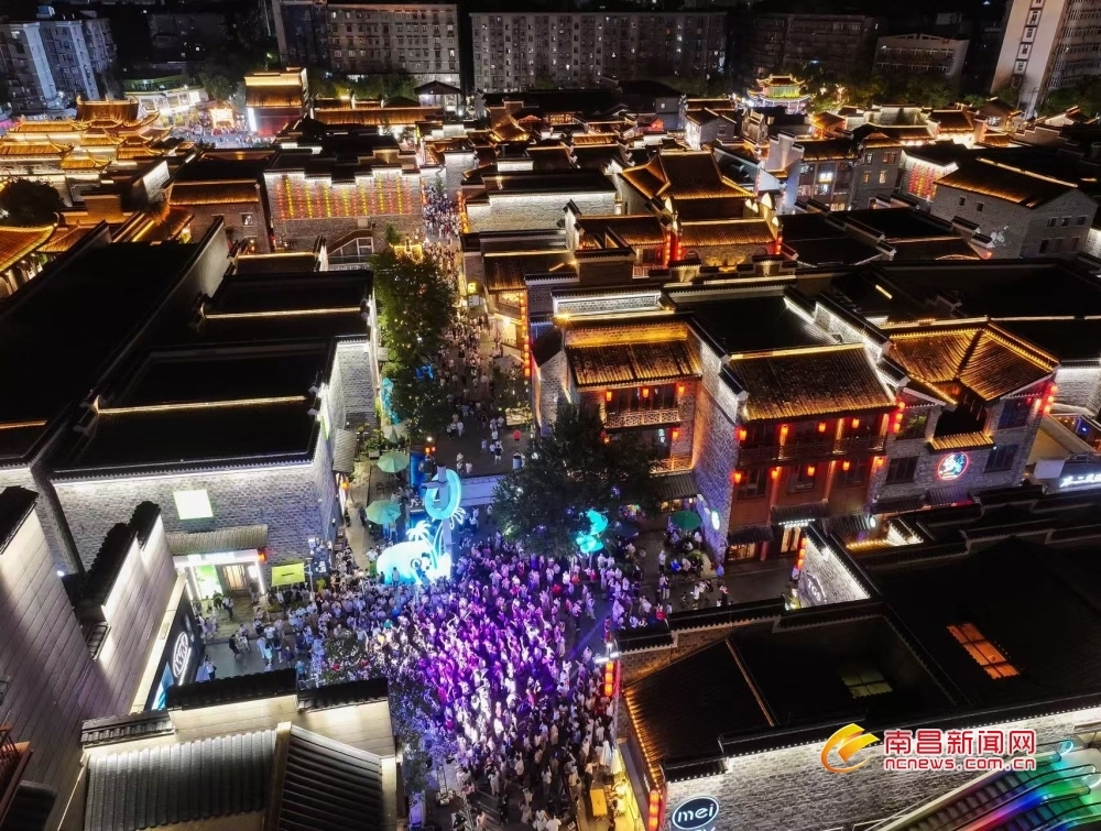 南昌新闻网讯 入秋后,南昌暑气未消,秋意初临,8月17日华灯初上,万寿宫历史文化街区的夜晚依旧人声鼎沸,在暑期尾声仍延续着旅游热潮。