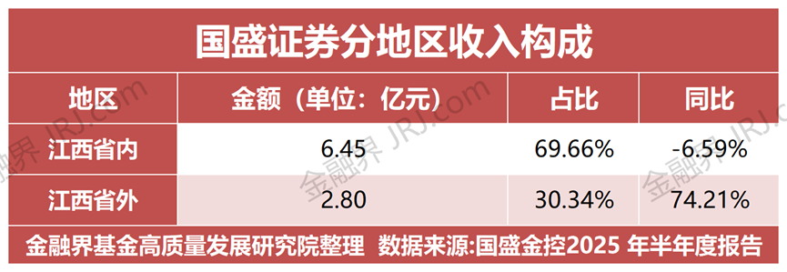 作为江西省属国资控股券商,国盛证券省内分支机构93家,数量居全省第一,实现市级行政区100%覆盖。省内收入占比约70%,数字看似比去年略有下降,实则全国化布局仍处蹒跚学步阶段——离开江西,品牌、客户与资源皆需重建,扩张之路漫长而昂贵。
