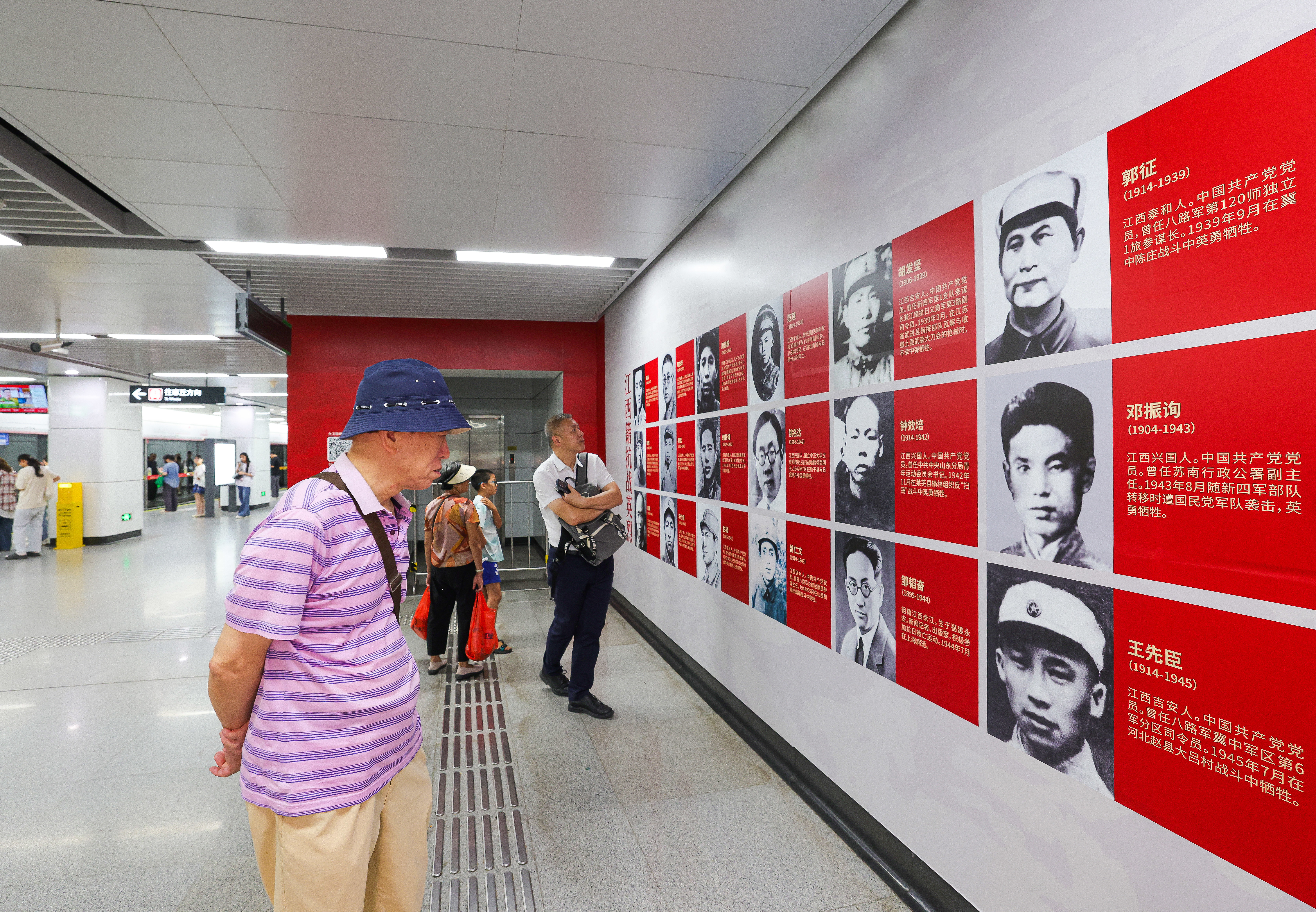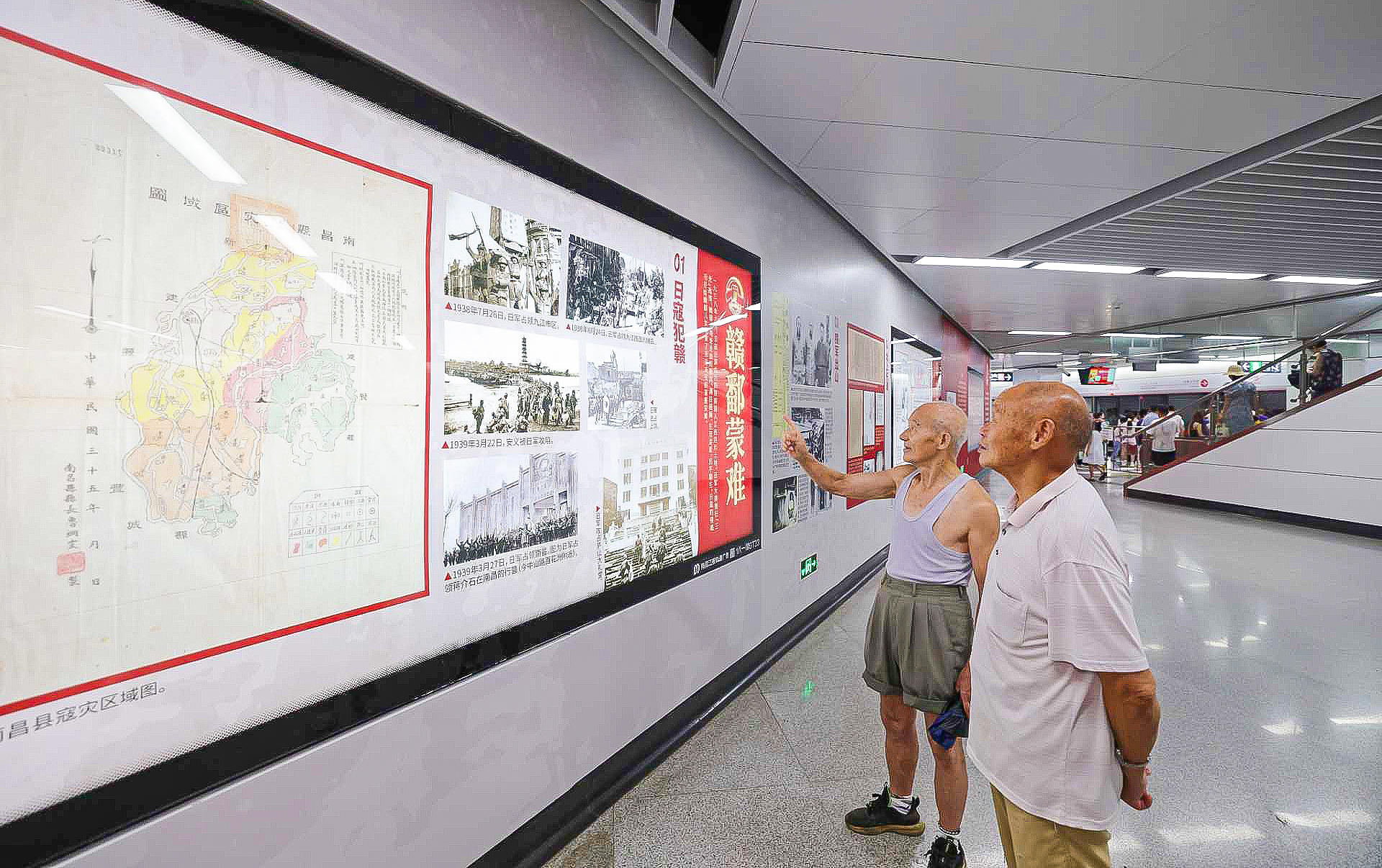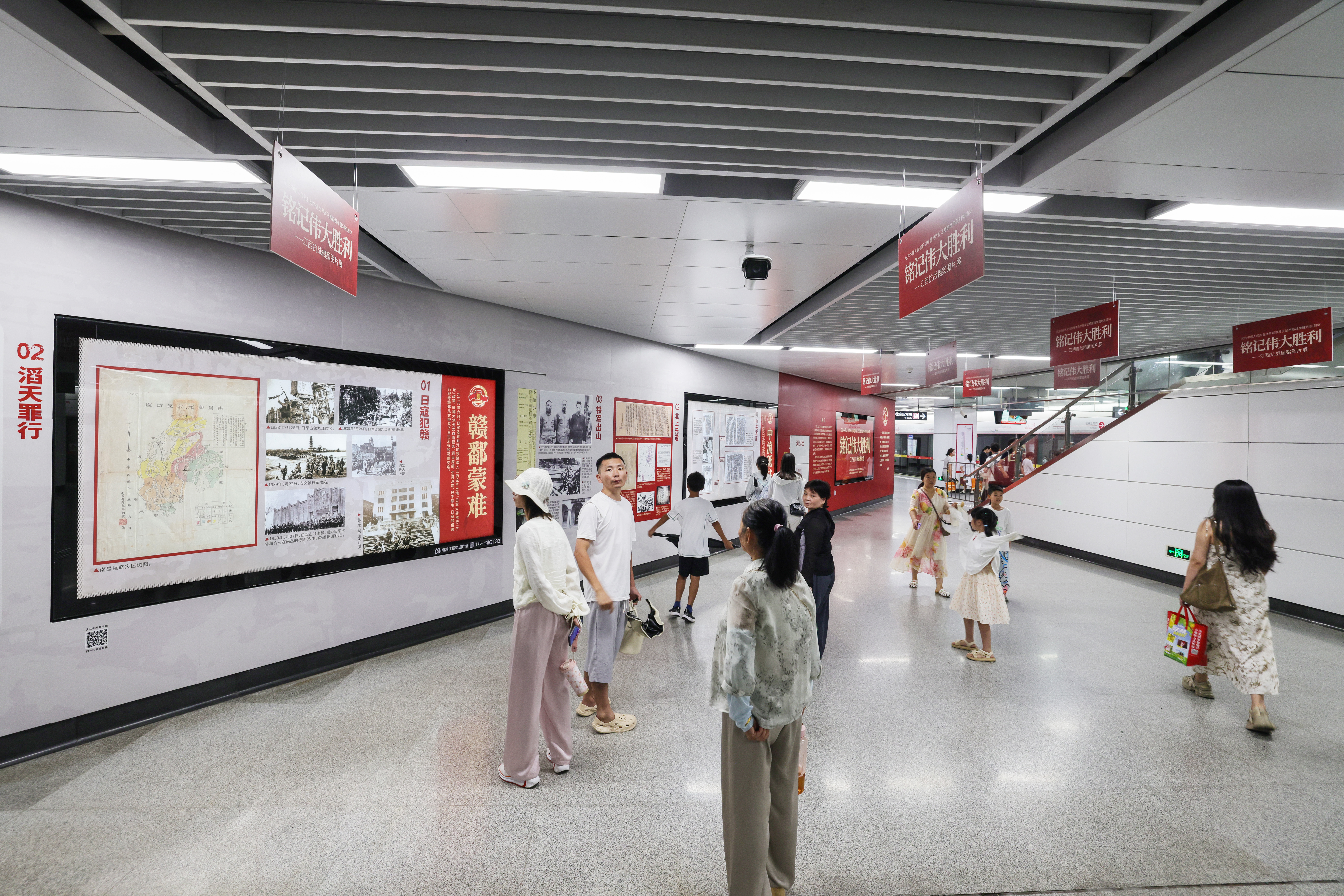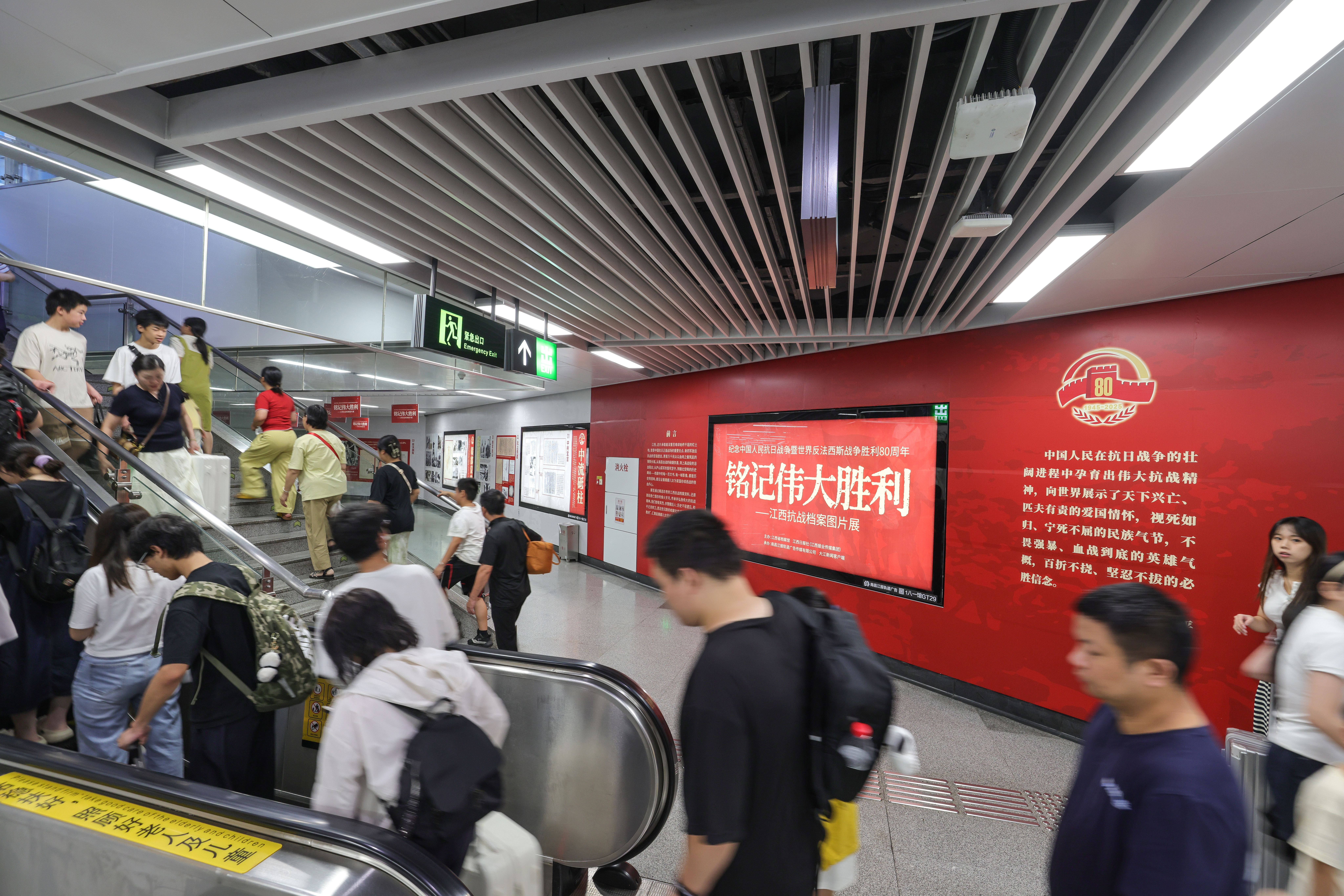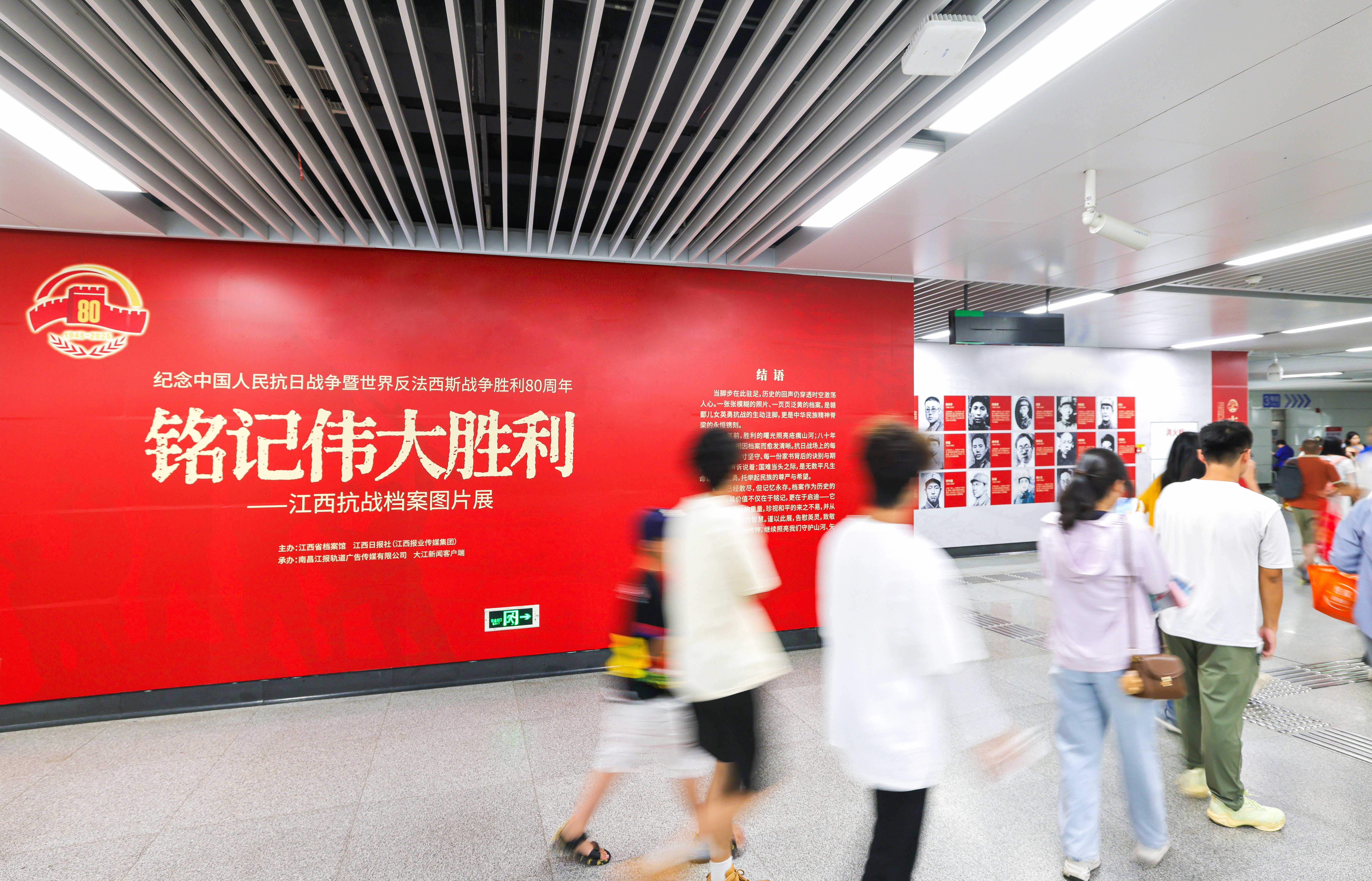 “铭记伟大胜利——江西抗战档案图片展”设置在南昌地铁八一馆站站台,精选江西省档案馆珍藏史料,以高清墙贴和灯箱为载体搭建起一个半开放式的“地下红色档案展厅”。