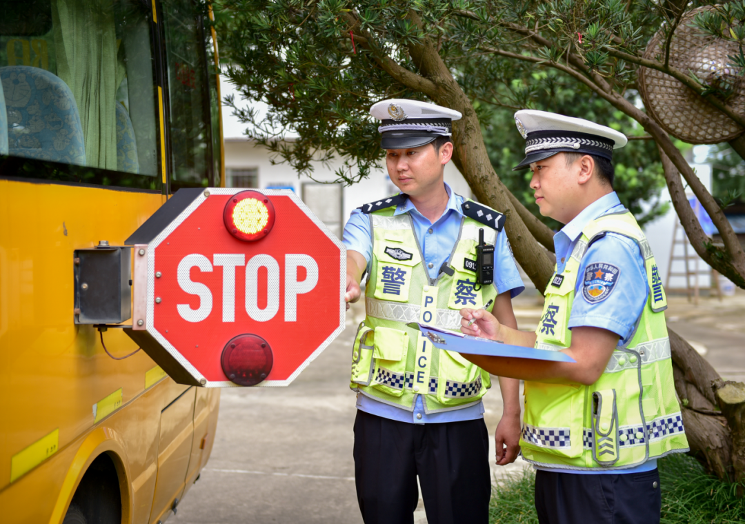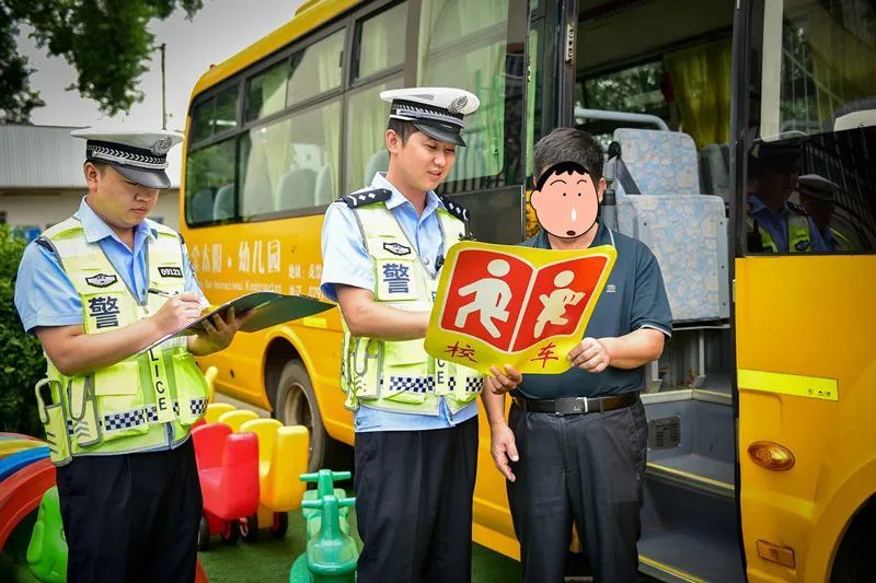 校车“大体检”中,民警对校车内外车况和车内安全设施进行仔细检查,认真查看校车发动机、校车标志灯、停车指示标志、轮胎等硬件是否正常运行,并逐一检查校车的安全带、三角架、安全锤、灭火器、急救箱等安全设备,是否齐全有效;同时,详细了解校车驾驶人资质和车辆年检保险等基本情况,对校车驾驶人开展交通安全宣传教育。