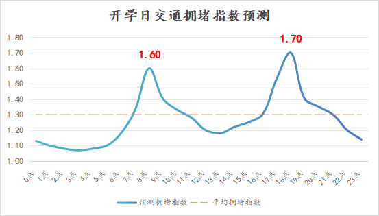 车多缓行于16:40左右开始,至18:50左右交通逐渐恢复。预计晚高峰最高小时平均拥堵指数可达1.70。