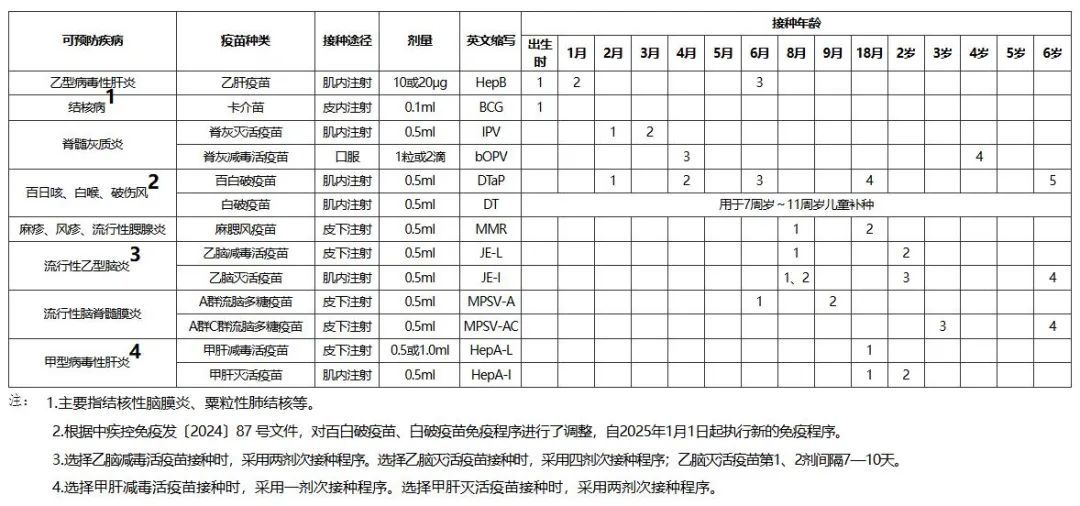 《国家免疫规划疫苗儿童免疫程序》(2025年更新)