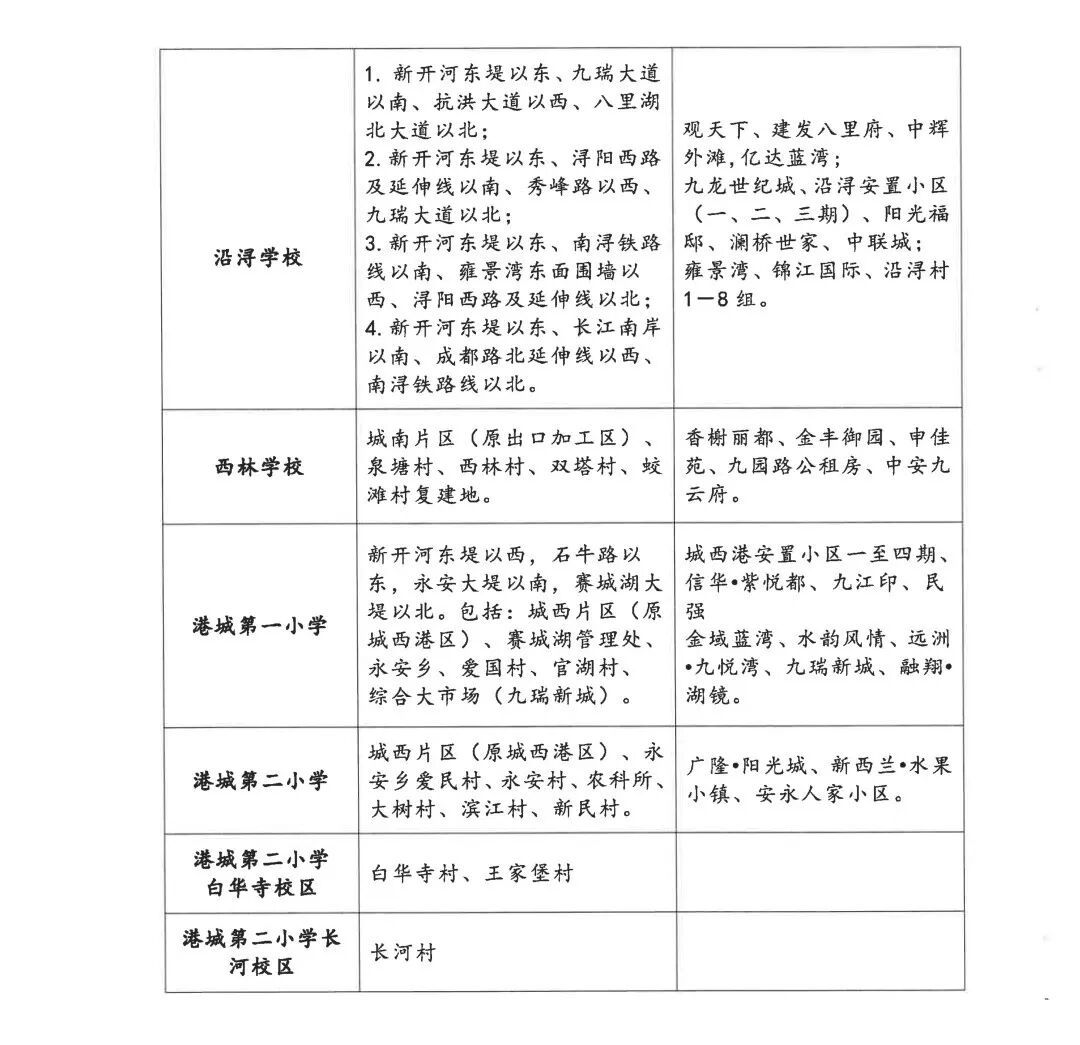 6.姑塘中小学(初中部):蔡岭村、周岭村、沿湖村、广桥村、邓桥村、香积村、谷山村、沙湖村、姑塘社区、化纤厂社区、青山码头。