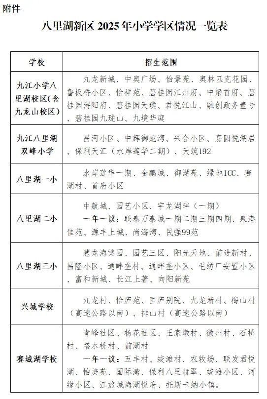 根据《中华人民共和国义务教育法》《江西省义务教育条例》《关于开展全省义务教育阳光招生专项行动(2025)的通知》(赣教基字〔2025〕8号)《九江市2025年中小学招生实施意见》和《濂溪区2025年中小学招生工作实施意见》等精神,结合我区实际情况,经研究,现将濂溪区2025秋季义务教育阶段学区划分调整如下: