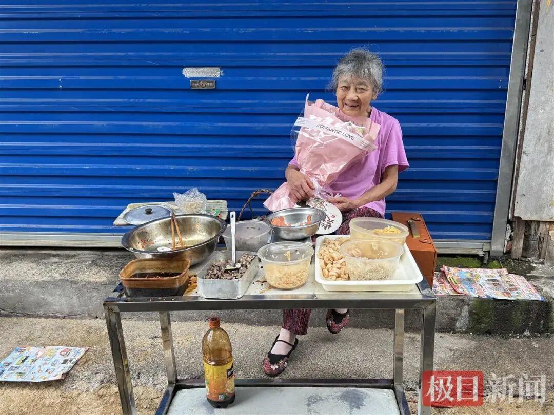 8月31日下午5时许,极目新闻记者在南昌市东湖区百花洲街道一所学校附近看到,76岁的程奶奶正像往常一样摆摊卖凉菜,陆续有市民前来购买。有顾客表示是特意来看望程奶奶的,一名小伙子还兴奋地提到,邓超刚来过这里,自己有幸和他合了影。