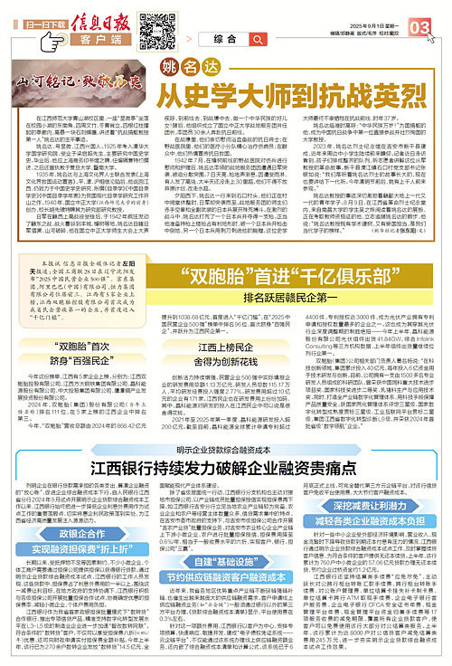 本报讯 信息日报全媒体记者左阳天报道:全国工商联28日在辽宁沈阳发布“2025中国民营企业500强”。京东集团、阿里巴巴(中国)有限公司、恒力集团有限公司位居前三。江西有5家企业上榜,江西双胞胎控股有限公司首次成为我省民企营收第一的企业,并首度迈入“千亿门槛”。