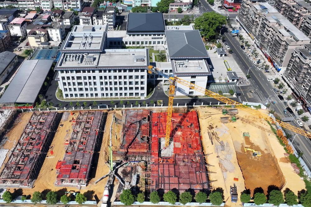 近日,宜丰县老年大学新校址旁的一处建筑工地,建设者正顶着骄阳施工作业。