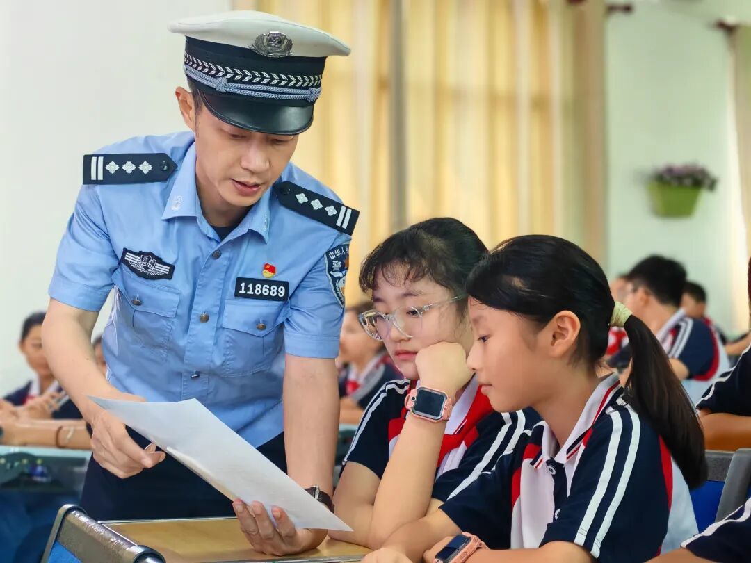 校园内,市公安局政治部组织“警护未来”宣讲团,围绕防溺水、防范校园欺凌、反诈、禁毒、交通安全、国家安全等主题,制作了6部优质宣讲视频课程,时长约100分钟。并与市教委协调联动,由市教委专项通知各县(区)教体部门,将系列视频作为“开学第一课”的核心内容,组织各学校学生全覆盖学习。各县公安(分)局同步对接属地学校开展安全宣讲进校园活动,凝聚警校家合力,共同为青少年健康成长保驾护航。南丰县公安局长红派出所联合应急管理局、消防救援站、交警大队走进南丰一中新校区,为师生带来一场生动的“开学安全第一课”。活动围绕防溺水和反诈两大主题,通过真实案例讲解防溺水“六不”原则,并针对学生群体常见诈骗类型进行剖析。高新分局长岭派出所高校中心警务室民警走进辖区高校新生军训现场,将反诈宣传、防盗科普、校园欺凌防治等安全知识融入迷彩青春,通过案例讲解、情景模拟、互动问答等形式,为辖区高校新生带来一堂“硬核”开学第一课。广昌县公安局充分发挥莲乡“志警”队伍作用,组织志愿警在开学季围绕防溺水、校园安全、禁毒、防霸凌等主题,通过发放资料、现场讲解等方式开展护学宣传活动,协助做好校园周边秩序维护,延伸安全宣传触角,增强学生及家长的安全防范意识。