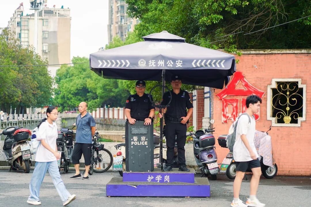 为了给师生们创造一个安全有序的出行环境,开学首日,交管支队根据各学校开学情况,科学安排部署“护学岗”勤务,定岗、定人、定责,全面启动“护学模式”。交警们一早就到达各个护学岗,指挥过往车辆有序通行,引导接送学生车辆即停即走,护送学生安全过马路。 各地按照“一校一方案”方式,因地制宜确定每所校园“护学岗”具体运行模式。临川分局 以 “人防+技防+宣教”全链条护校,组建由民警、学校安保、学校教师、家长志愿者组成的“护学专班”,在上下学高峰时段实行“定岗+巡逻”值守;在校园周边布设智能监控,通过时回传及异常行为预警功能24小时不间断监控关键区域;在上下学高峰期对来接送孩子的学生家长,以喊话、发放宣传册等形式开展反诈、防溺水、防盗等安全知识宣传,切实提高家长们的安全意识。 南城县公安局 将传统“护学岗”升级为 “护学岗+”模式,交管民警、特巡警、派出所民警齐上阵,同时积极整合学校保安、教职工、家长志愿者力量,形成 “警校家”联动护学圈。 江西师范大学附属东临新区实验学校迎来首批新生报到,为了保障新生安全有序入学,东临分局高度重视,安排部署警力,维护现场秩序,全力做好各项安全保障工作。 乐安县公安局组织各辖区派出所民警前往各中小学开展护岗与安全宣传活动,在学校门口及周边路段疏导交通、引导学生安全入校,筑牢校园“安全防线”,同时,通过发放手册形式,向师生普及防踩踏、防诈骗、交通安全等知识,用实际行动为新学期校园安全保驾护航。