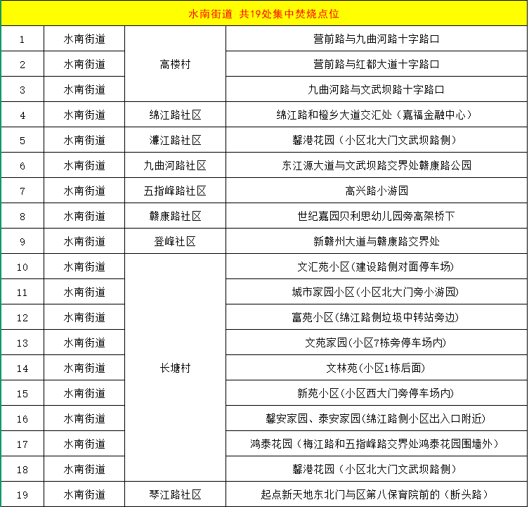 此外,我区各镇街已划定181处临时集中焚烧点(详见《章贡区2025年“中元节”集中焚烧点统计表》)。请广大市民积极配合社区工作人员管理引导,就近选择集中焚烧点,自觉做到不燃放烟花爆竹,以安全、有序、文明的方式表达哀思。
