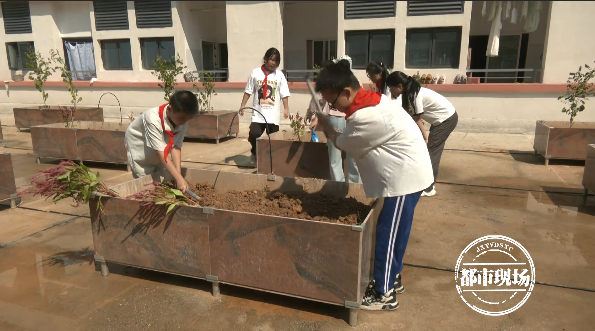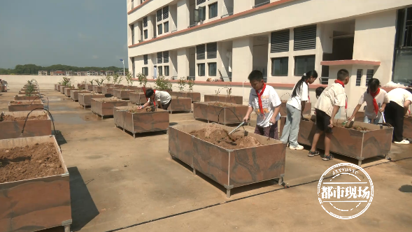 永丰县城西小学副校长朱凤梅告诉记者,城西学校去年建成并投入使用的新学校,考虑到现在的孩子们缺乏劳动,也对中草药、蔬菜等植物缺少了解的机会,他们特意将楼顶这片开阔场所用木箱开发成种植基地,让孩子们参与其中。“我们借助这样的一个平台和场地,让孩子们亲力亲为地来参与这些中草药和蔬菜的种植,让他们来了解这些中草药的生长规律及功效作用,对于我们学校落实五育并举也是一个重要的举措。”