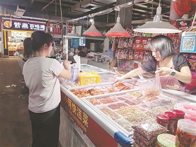 在凤凰集贸市场一家快洁菜摊前,几名市民正在挑选菜品。“孩子喜欢吃可乐鸡翅,我每隔一段时间都会到这里买清洗、腌制好的鸡翅,买回家直接下锅就行,特别方便。”市民熊露丽买了一斤鸡翅和半斤鱿鱼须。快洁菜的何老板告诉记者,腌制好的鸡翅26元一斤、鱿鱼须45一斤,“我们的菜品清洗得非常干净,买回家加点配菜炒一下就可以出锅了,不少顾客到我这里买。”