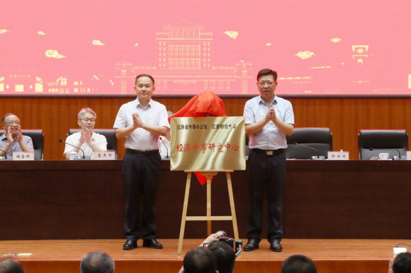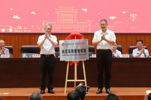 随后,在与会人员的共同见证下,雷杰华与刘耀彬为江西财经大学格里菲斯数智学院揭牌,涂安波与袁红林为经济外事研究中心揭牌。