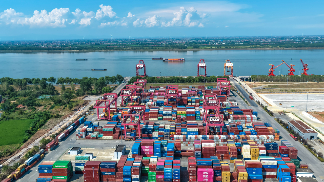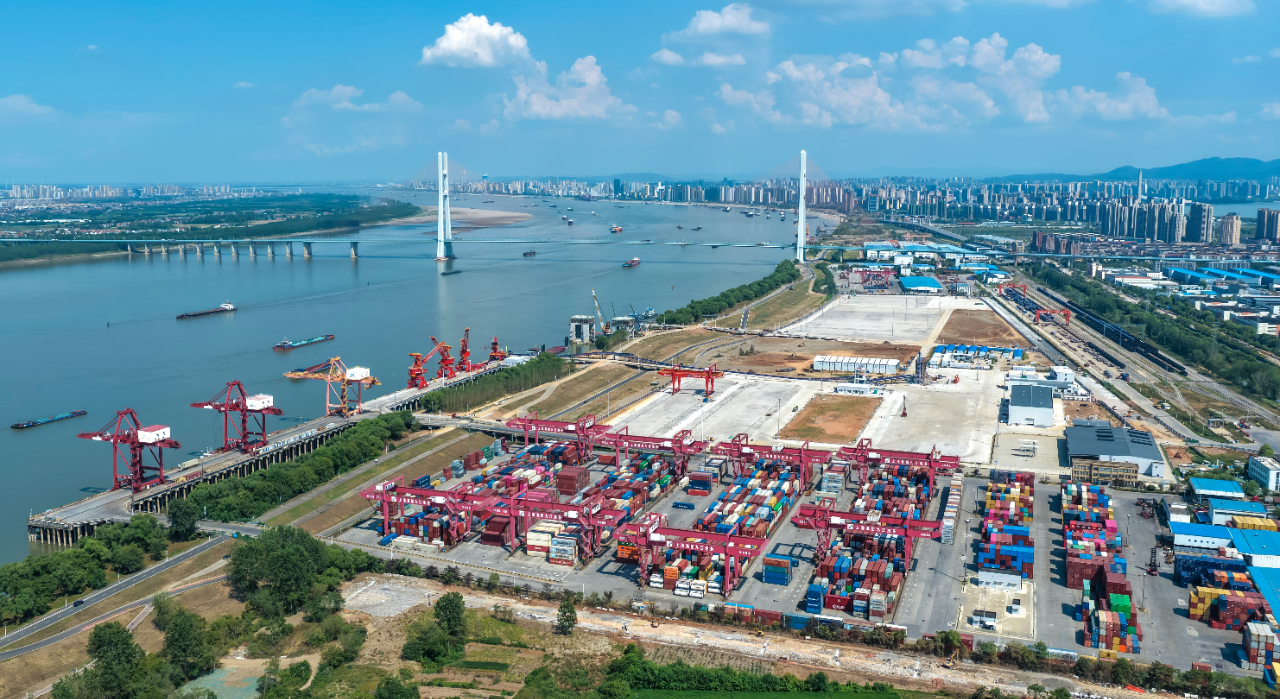 日前,位于九江经开区的九江兴港集装箱码头,货轮有序装卸集装箱,一派繁忙景象。近年来,九江港升级水运设施,开辟多式联运通道,提升辐射能力。以构建“江海直达、服务全省、辐射周边”的区域航运中心为目标,加快建设港口型国家物流枢纽,推动我市高标准高质量建设长江经济带重要节点城市。(魏东升 九江日报全媒记者 张驰 摄)