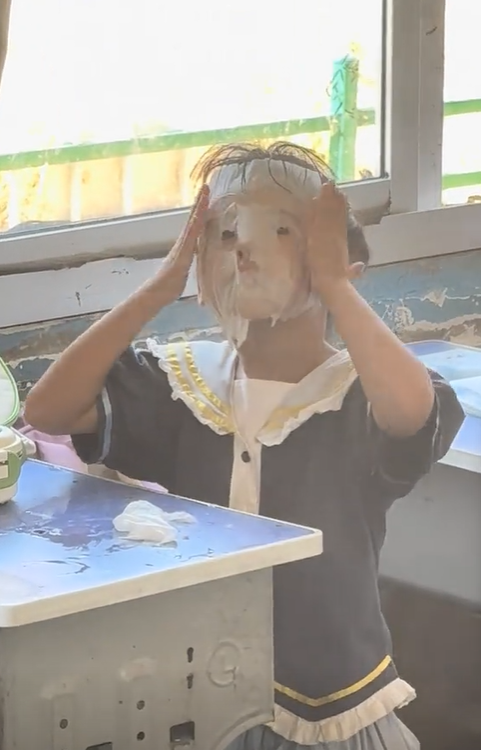 在江西上饶一所小学的一年级课堂上,一名刚入学的7岁小女孩用自带的卫生纸蘸取水杯里的水,小心翼翼贴在脸上,模仿大人敷面膜的样子,可爱又搞笑的画面被老师记录下来,迅速成为社交平台的热点话题。