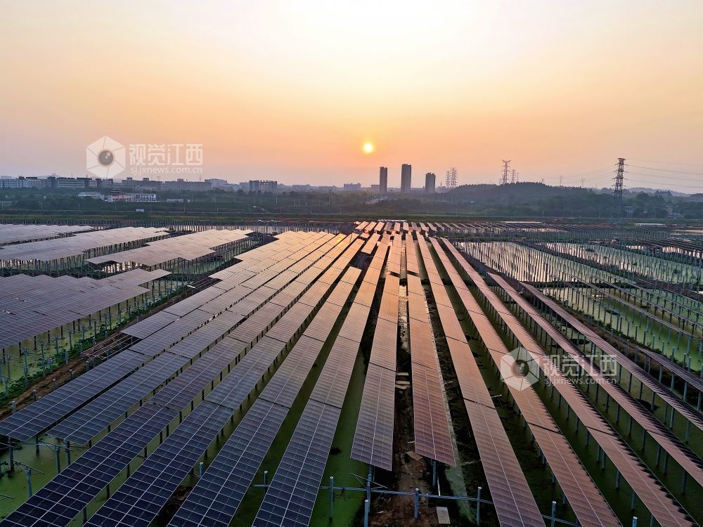连日来,江西省赣江新区新祺周管理处江夏分场60MW “渔光互补”光伏发电项目快速有序推进。2025年9月7日清晨,施工人员正在进行光伏发电支架、组件、面板等设施安装作业。该项目占地1000亩,将渔业养殖和光伏发电有效结合。项目建成后年均发电量约6600万千瓦时,可节约标煤约50万吨,减排二氧化碳135万吨。 视觉江西 袁骏 摄