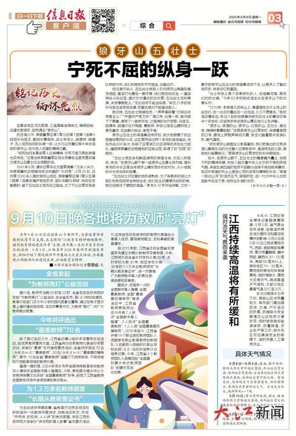 除了亮灯活动之外,江西省还精心组织多项宣传庆祝活动。在优秀教师宣传方面,江西省将对优秀教师代表进行专题访谈,并举办“最美”系列推选宣传活动。全省共评选出70名(含提名60名)“最美教师”、20名(含提名10名)“最美高校辅导员”,其中,10名全省“最美教师”涵盖了不同年龄段、不同地域和不同教育领域的教师代表。