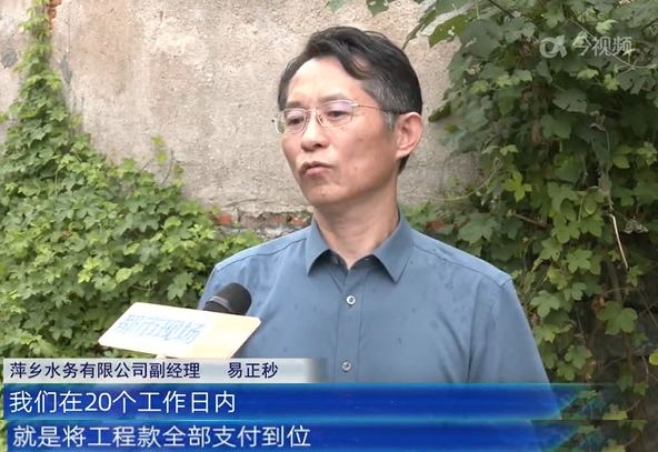 萍乡水务有限公司回复: 该工程目前还没有完工,公司召开了专题会议,对已经做了的工程量做一个阶段性的结算,结算后20个工作日内将工程款全部支付到位。
