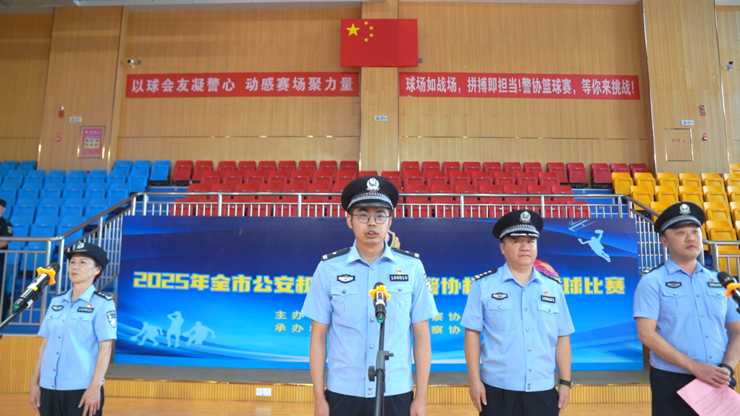 9月8日下午,全市公安机关第二届“警协杯”男子篮球比赛正式开赛。市公安局党委委员、副局长龙森容,市公安局党委委员、政治部主任周裕明,市警察协会常务副会长邓卡昕,市警察协会副会长兼秘书长颜峭芸出席比赛开幕式。