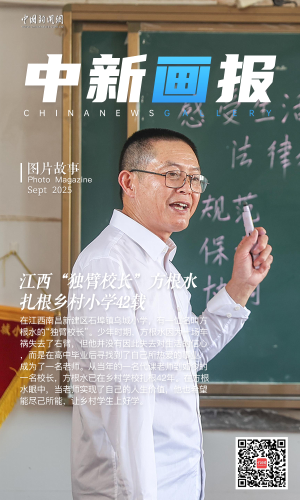 2025年9月10日是中国第41个教师节。在江西南昌新建区石埠镇乌城小学,有一位名叫方根水的“独臂校长”。少年时期,方根水因为一场车祸失去了右臂,但他并没有因此失去对生活的信心,而是在高中毕业后寻找到了自己所热爱的事业,成为了一名老师。从当年的一名代课老师到如今的一名校长,方根水已在乡村学校扎根42年。在方根水眼中,当老师实现了自己的人生价值,他也希望能尽己所能,让乡村学生上好学。图为9月4日,方根水使用多媒体设备给学生上道德与法治课。方根水紧跟信息化教学的脚步,在课后时间练习打字、操作教学设备等技能。(中新社记者 刘力鑫 摄)