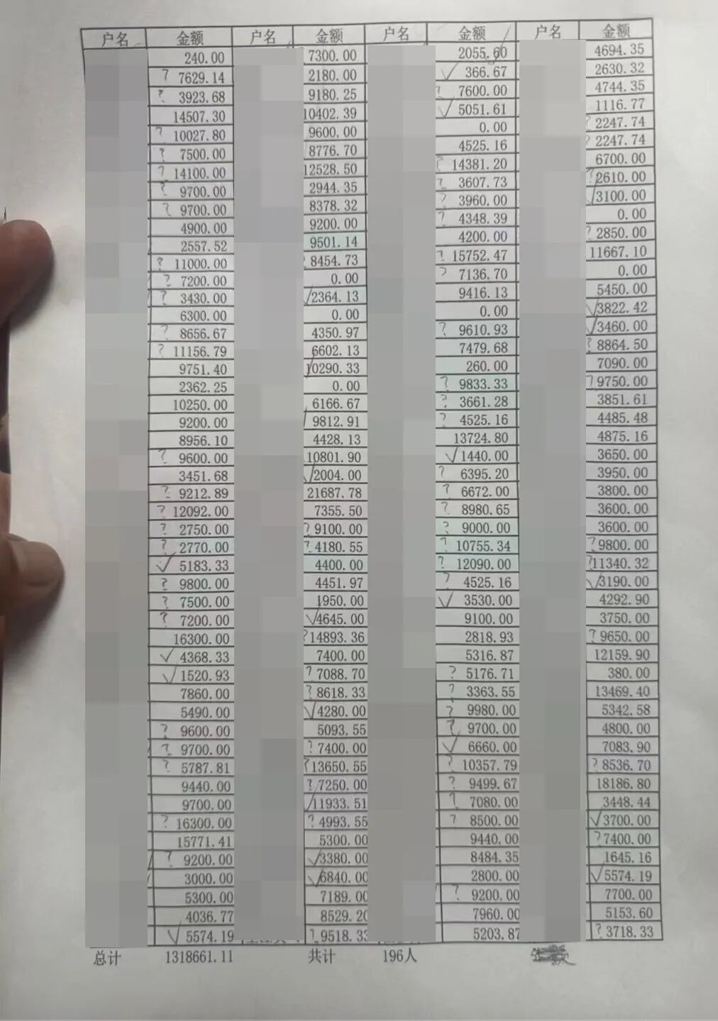 公司统计的欠薪表