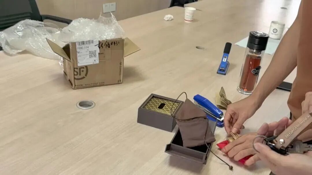 民警紧急联系包裹目的地警方,两地警力快速布控,终于在9月8日诈骗分子取件前成功拦截包裹,当场截获100克足金。