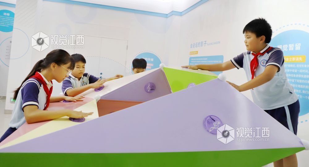 今年9月是首个全国科普月,江西省新余市各中小学校纷纷组织学生参观科技场馆、体验科普设备,让提高学生们的科学探究兴趣,感受科技魅力。图为9月11日,在江西省新余市科技馆,小学生在体验科普设备、进行科学小实验。 视觉江西 廖海金 摄