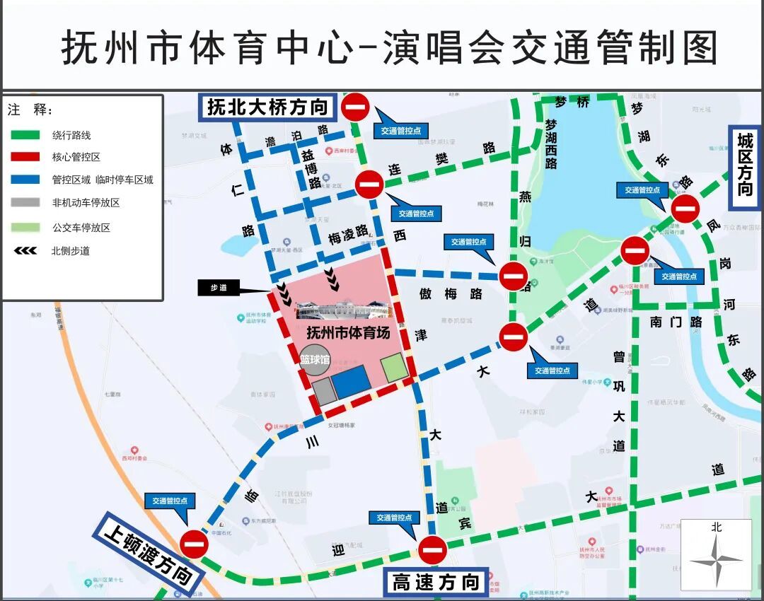 “唱响抚州 思毛之夜”群星演唱会将于2025年9月14日晚在抚州体育中心举行,为确保此次大型活动期间道路交通安全、畅通、有序,根据《中华人民共和国道路交通安全法》等法律法规规定,决定对抚州市体育中心周边道路实施临时交通管制,现将有关事项通告如下: