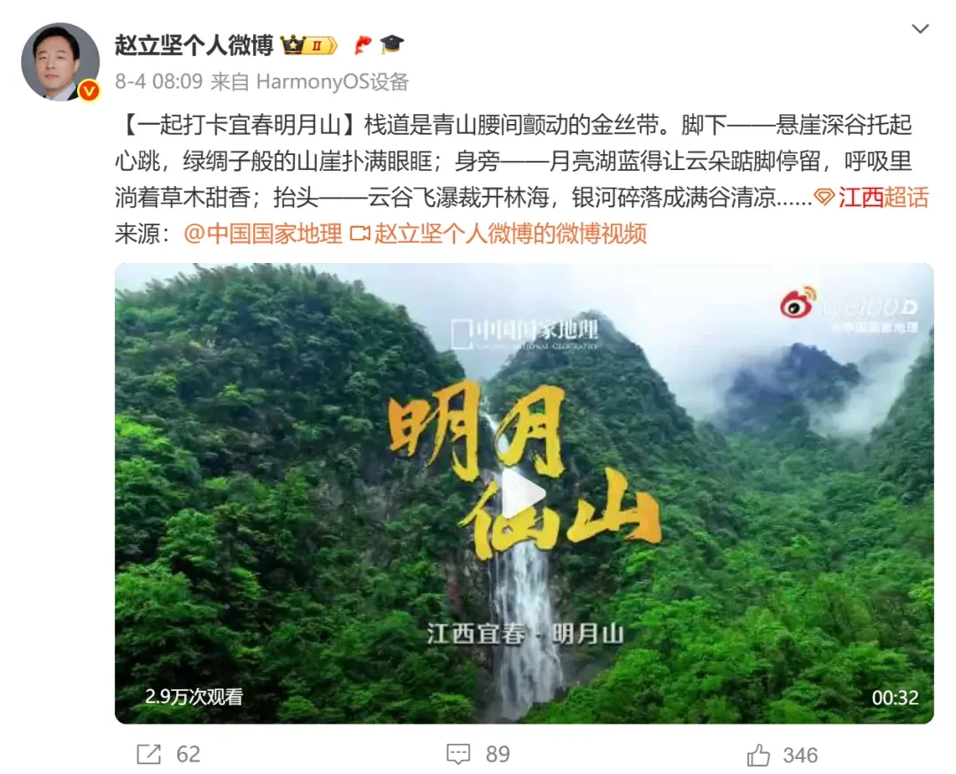 赵立坚微博推荐后,景区发起#打卡赵立坚推荐的神仙栈道#话题,同步上线“跟着外交官游明月山景区”专线,串联云谷飞瀑、青云栈道、月亮湖等资源;演员海陆分享打卡Vlog后,#跟着紫薇格格游明月山景区#话题阅读量攀升,景区重点推高山小火车等网红项目,流量变客流。