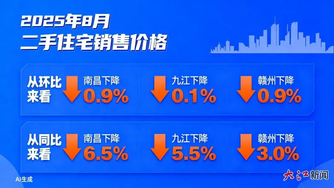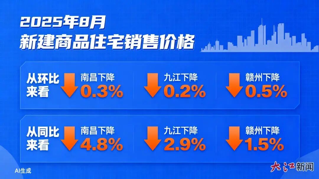 9月15日,国家统计局发布数据显示,2025年8月份,南昌、九江、赣州三地房价下跌。