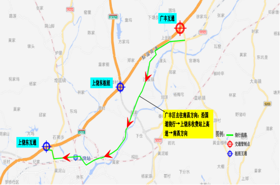 路线三:上饶东收费站调头→沿沪昆高速浙江方向→广丰收费站下高速→广丰地区。