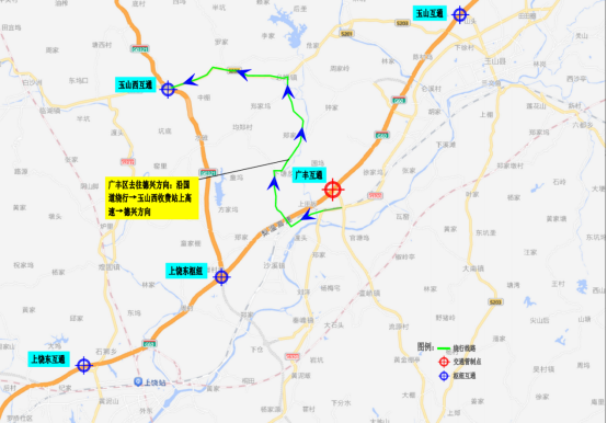 去往德兴方向车辆绕行路线:由G320国道→G3021德上高速玉山西收费站上高速→去往德兴方向。