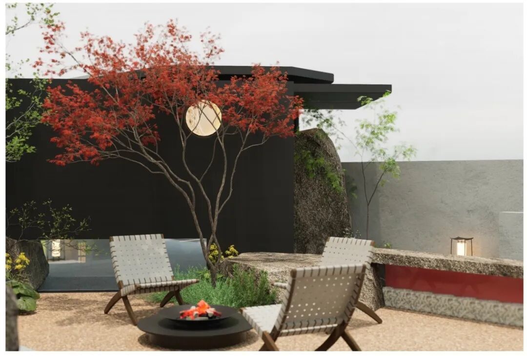 整体设计不追求“完美景观”,而是保留叶片自然飘落、枝条随性伸展的野态,让院子成为四季流转的容器,春有新绿、夏听蝉鸣、秋赏落枫与果实、冬观乌桕枝干,实现人与自然的松弛共生。