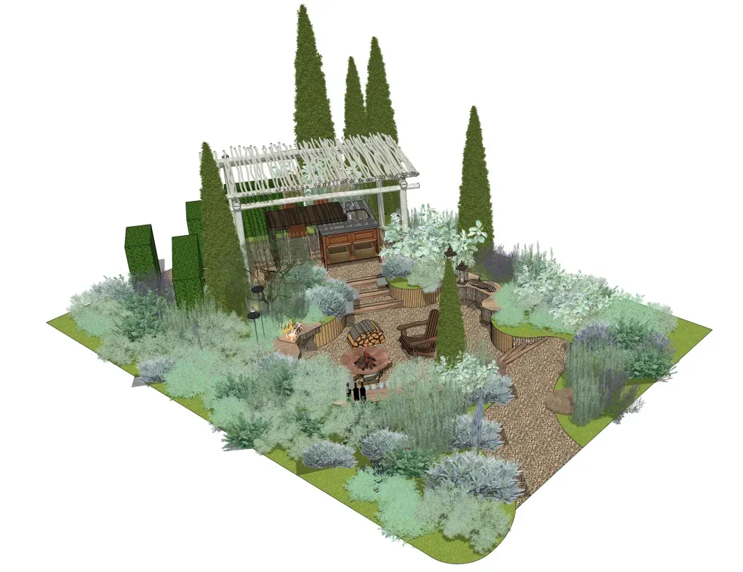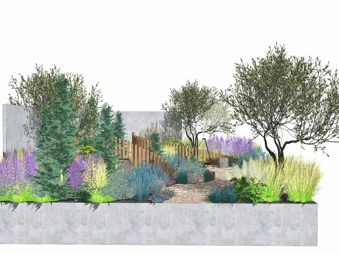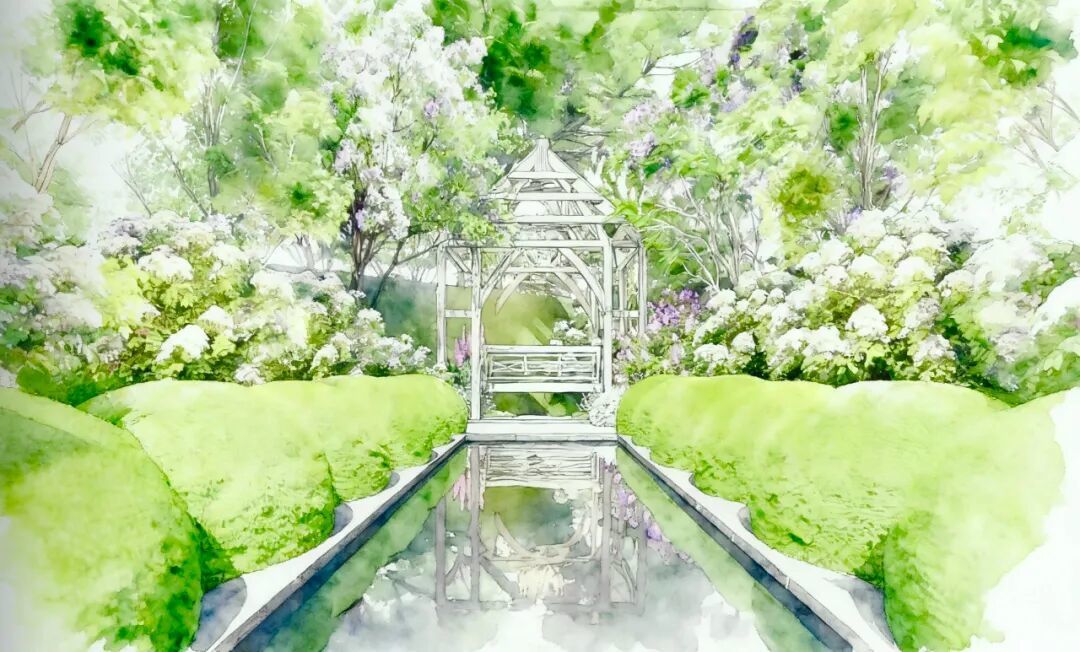 本设计旨在打造一个沉浸式的现代英式花园,以“时间的流逝”为核心叙事线索。花园不仅仅是植物的集合,更是一段可漫步、可感知的四季旅程。