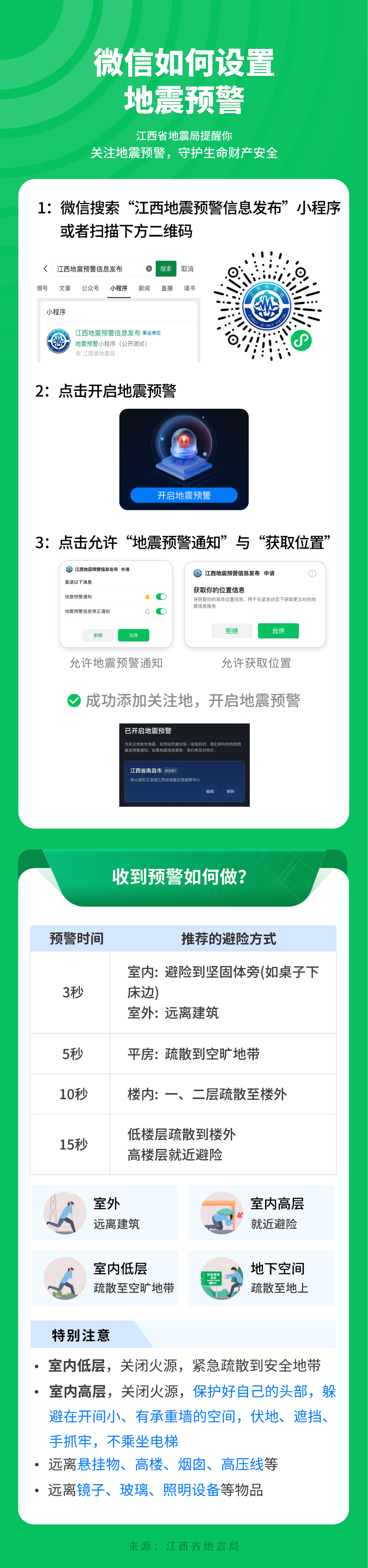 地震预警是地震发生后、破坏性地震波到达前发出警报,争取数秒至数十秒紧急处置时间的技术。为使公众了解地震预警信息接收渠道,江西省地震局将于2025年9月19日在全省范围内推送公益短信,提醒大家关注“江西地震预警信息发布”小程序。