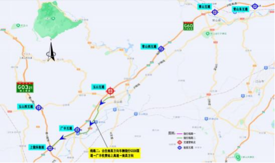 路线二:从常山西收费站提前下高速→沿320国道→玉山县;