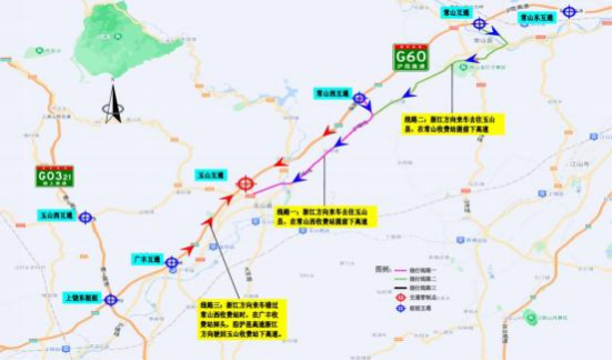 路线一:从常山收费站提前下高速→沿205国道→320国道→玉山县;