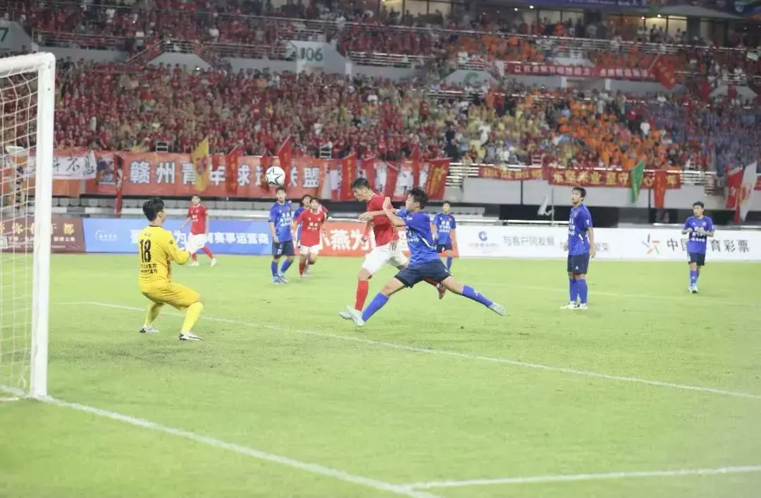 比赛伊始,双方迅速进入状态。开场仅3分钟,抚州队便凭借一次精彩的空中配合取得领先。53号球员李轲接队友左路传中,凌空抽射破门,为球队打入首球。第21分钟,抚州队再下一城。52号球员曹靖康在禁区内接到队友传球,一记头球将比分改写为0∶2。上半场结束时,抚州队带着两球优势领先。