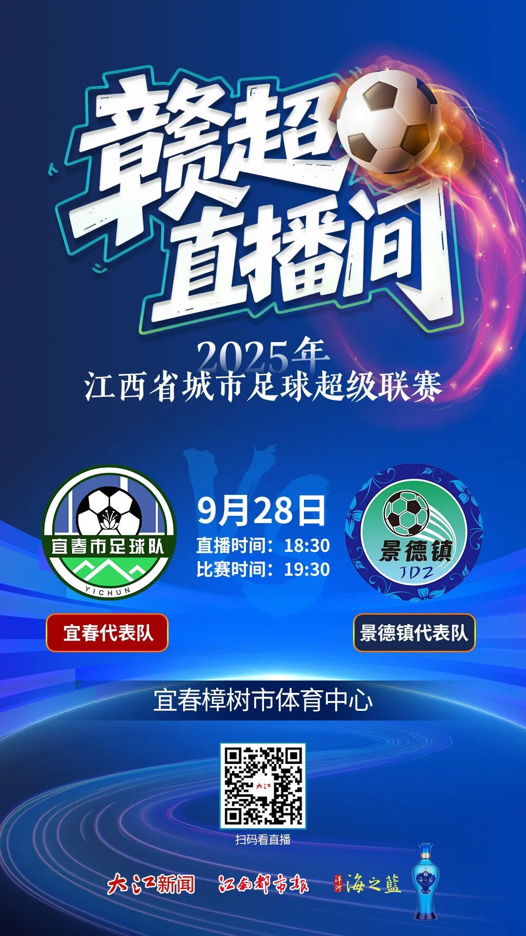 两场比赛均于9月28日晚19:30准时开球。其中,宜春vs景德镇的直播时间为18:30,球迷朋友们可以通过大江新闻客户端、大江网视频号、大江网抖音号等平台观看赛事直播,为自己喜爱的队伍加油助威。另外一场比赛将于19:30在大江新闻客户端上直播。