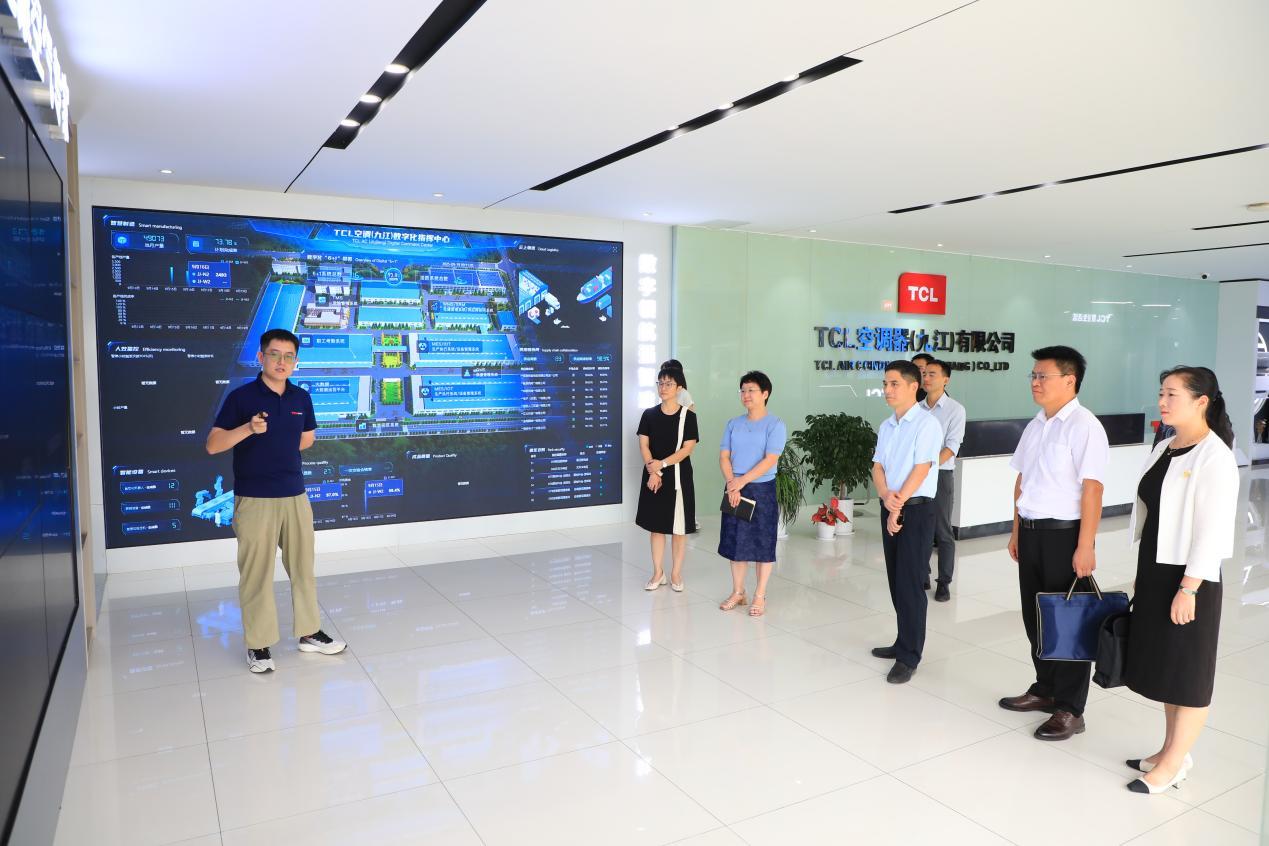 活动伊始,在TCL空调器(九江)有限公司总经理沈督陪同下,吴新谱一行深入企业展厅及技术研发区域,实地察看生产经营情况,详细询问产品生产流程、岗位技能标准及实习实训需求。该公司人力资源部经理郭舜介绍了企业发展规模、产业布局及人才储备规划,为学院精准对接人才培养方向提供了实践参考。