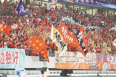 “从奥体中心地铁站出来,一路全是穿红色球衣的人,有的举着‘南昌必胜’的牌子,有的三五成群聊着上次比赛的进球。”9月20日是南昌队主场对阵赣州队的淘汰赛第一场,56岁的球迷李大哥提前1小时就到了江西省奥体中心,眼前的场景让他忍不住掏出手机拍照:入口处,球迷组织的志愿者在给大家发小旗子和贴纸;看台上,球迷团的成员们已经拉起了巨型横幅,广播里循环播放着红色歌曲,不少人跟着旋律哼唱,声音越来越大。