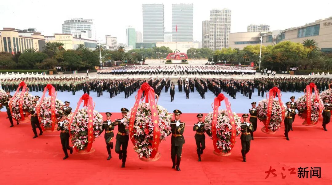 在昌省委各部门、省直各单位、各人民团体、各民主党派省委会、省工商联主要负责人和无党派人士代表,南昌市党政军负责同志,老战士、老同志和烈士亲属代表,驻赣部队官兵,学校师生等社会各界群众代表1600余人参加敬献花篮仪式。
