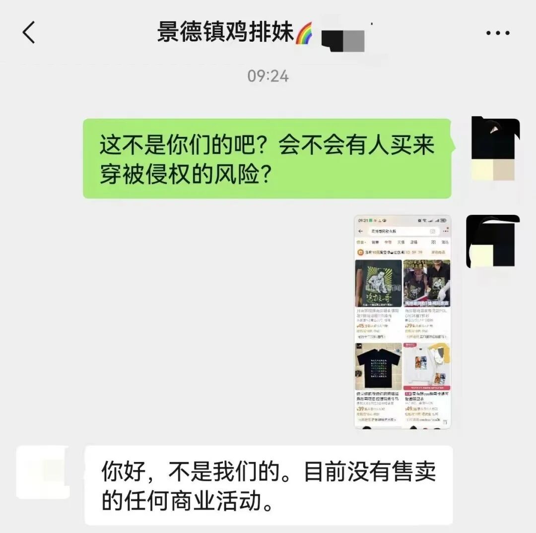 记者随即询问“鸡排哥”的妹妹,得到了明确的回应:“不是我们的,目前没有售卖。”当记者联系两位正在出售“鸡排哥同款T恤”的商家时,截至发稿暂未得到回应。
