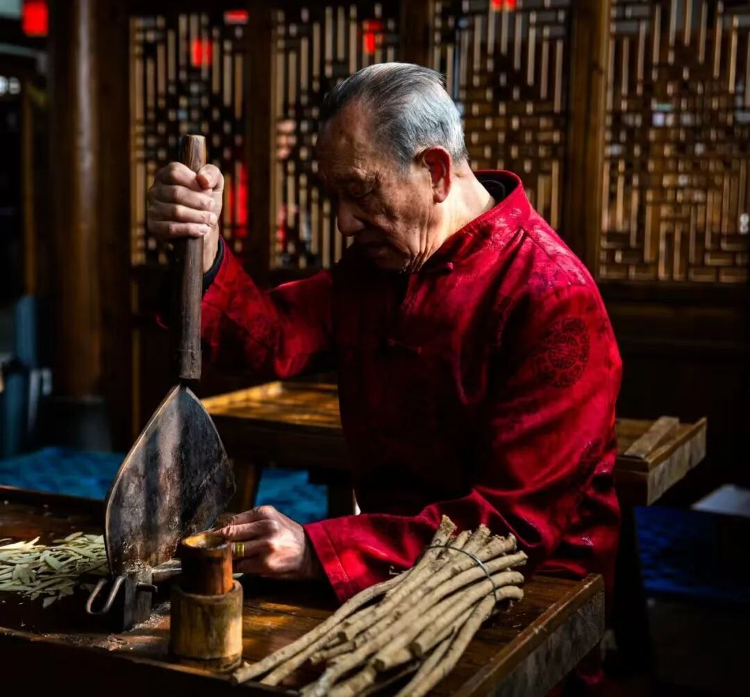 建昌帮以传统炮制技艺精良而闻名。其炮制工具独特,豚刀(建刀)、雷公刨是最具代表性的工具。这些“神级装备”能成就片形均匀、薄如蝉翼的饮片,堪称中药界的“视觉盛宴”。
