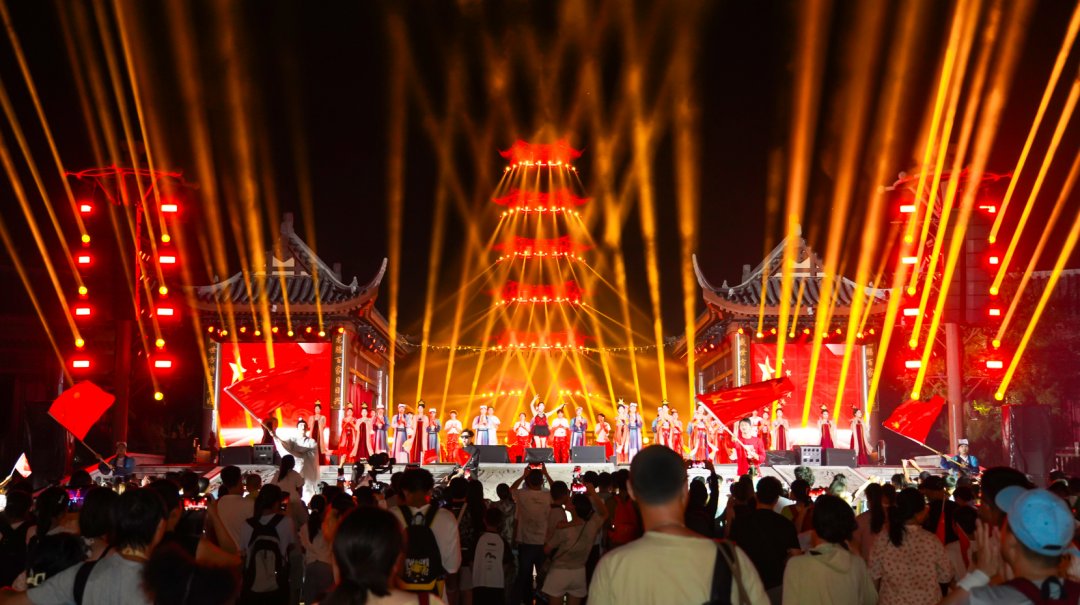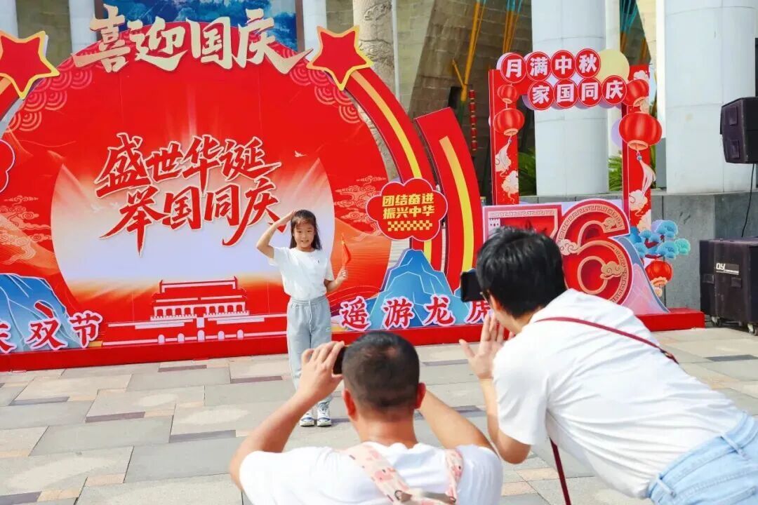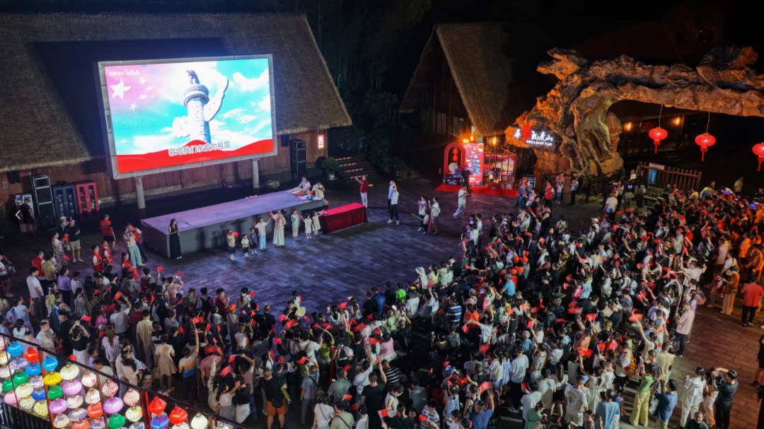 国庆献礼活动氛围热烈。龙虎山景区爱国主题打卡点和“国旗飘扬·泸溪泛舟”活动吸引大量游客参与;《寻梦龙虎山》演出现场千人大合唱场面震撼无比,磅礴声浪汇成对祖国最深情的集体告白。鹰潭方特东方神画每晚准时绽放的“千里江山烟花秀”,生动演绎出国泰民安、山河锦绣的时代华章。白鹤湖嘻嘻哩生态水世界瓦子灯祈福夜,现场千余名游客共同许下对家国、对亲人、对未来最美好的祝愿。