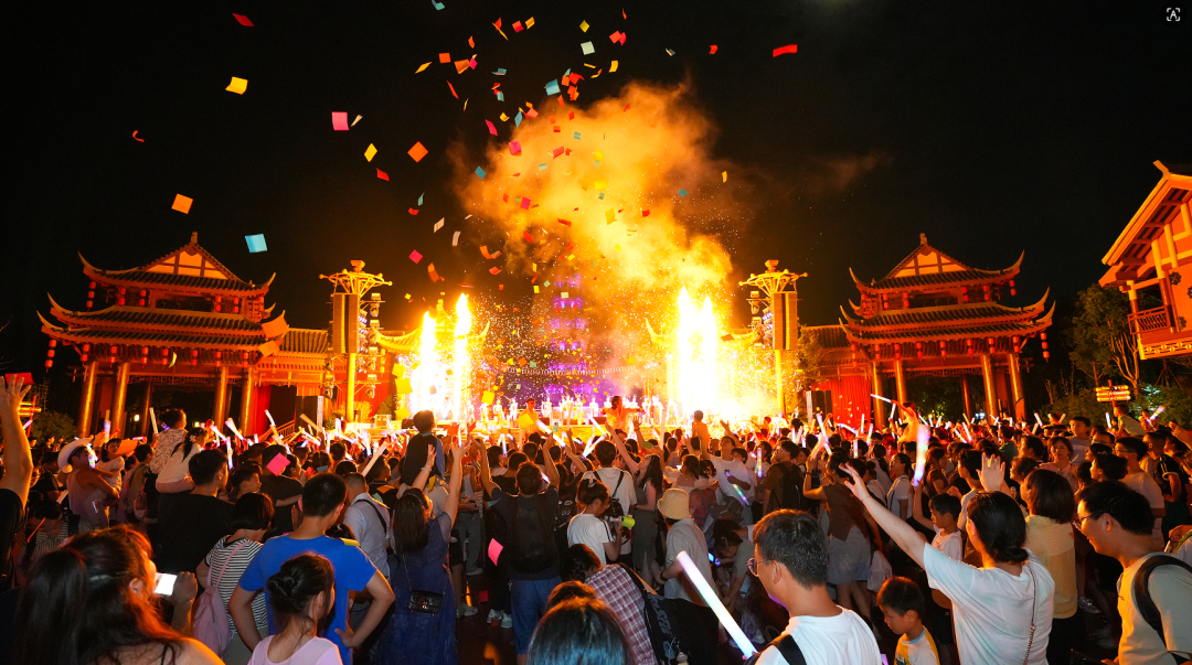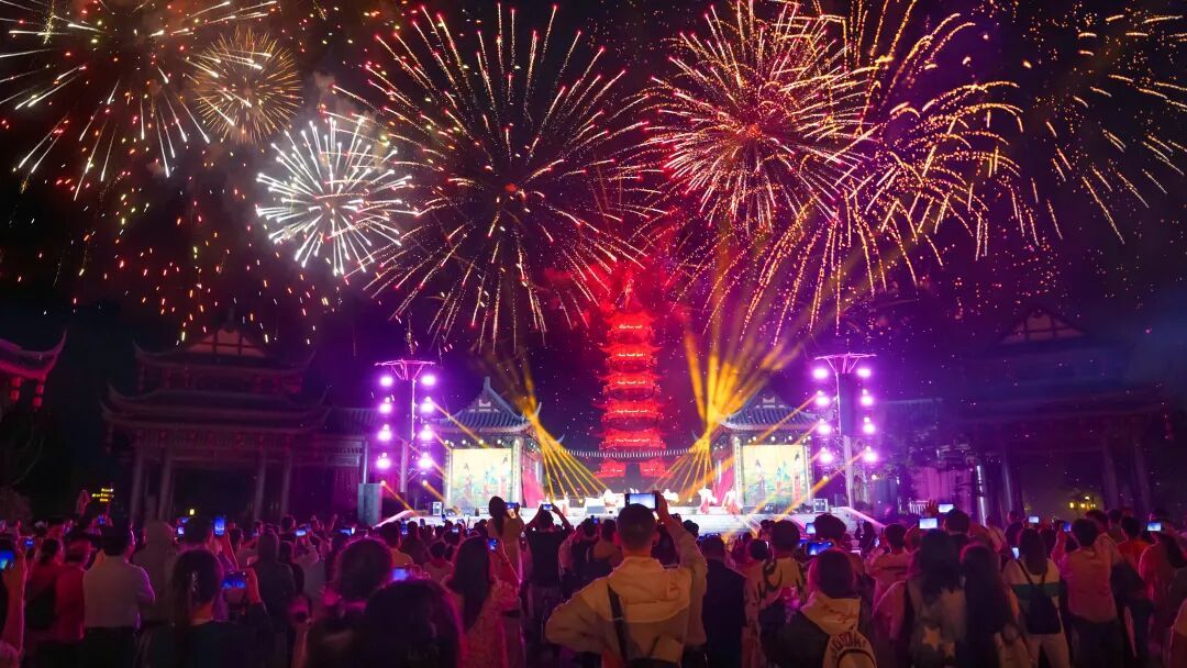 沉浸式夜间消费场景成为拉动假日消费的“新引擎”。假日期间,夜幕下的鹰潭化身“不夜城”,景区、街区、商家联动发力,构建起“景区夜游+街区夜娱+非遗夜演”的多元格局。龙虎山景区全新推出“道文化高空栈道主题夜游项目”,为游客解锁夜间游玩新体验,进一步带动景区夜经济消费。方特东方神画、周塘小镇、白鹤湖景区、青茅境景区、嘉乐城等点位推出烟花秀、打铁花、非遗瓦子灯、千人火把舞、cos动漫秀等夜场活动,将传统文化与潮流文化深度融合,丰富游客双节游玩体验,进一步激活鹰潭夜经济活力。