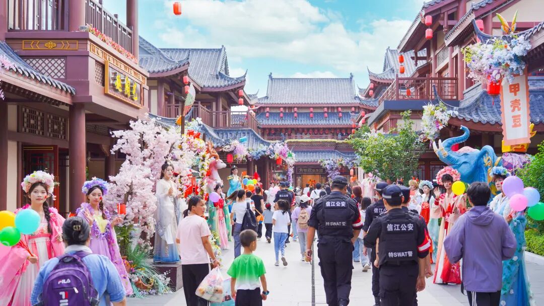 为全力保障游客体验,各景区保障服务措施再升级。龙虎山景区指挥调度中心24小时联动,增设遮阳降温设施,提供免费热水、基础药品及导览服务。鹰潭方特安排工作人员和公安特警在园区巡逻值守,维护游玩秩序。各大景区内志愿者服务岗、医疗点随时待命,细致服务赢得市民游客广泛好评。