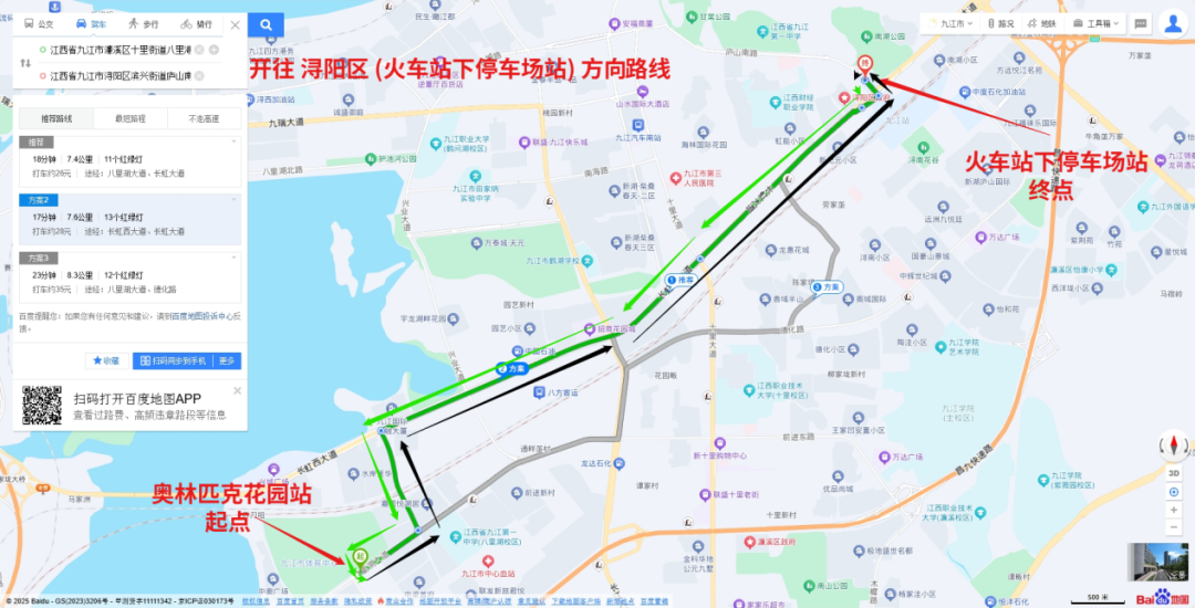车辆停放位置:赛前在柴桑区(政务服务中心站)、赛后在市政府西附楼的(祥和路东侧·九龙新城A区)公交站台。